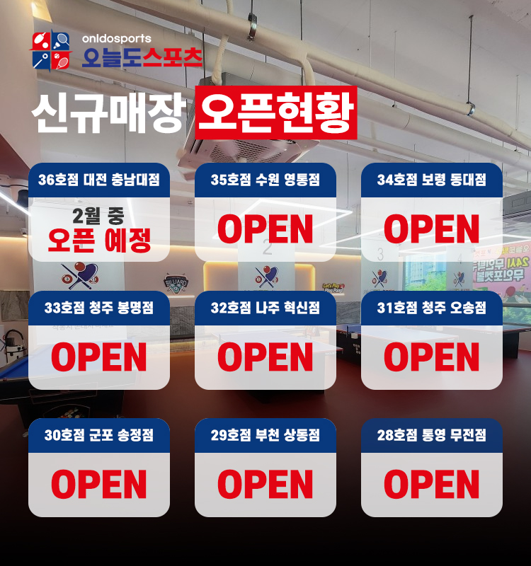 안녕하세요, 고객 여러분!여러분의 사랑과 관심에 힘입어 오늘도탁구&포켓볼 수원 영통점이 새…